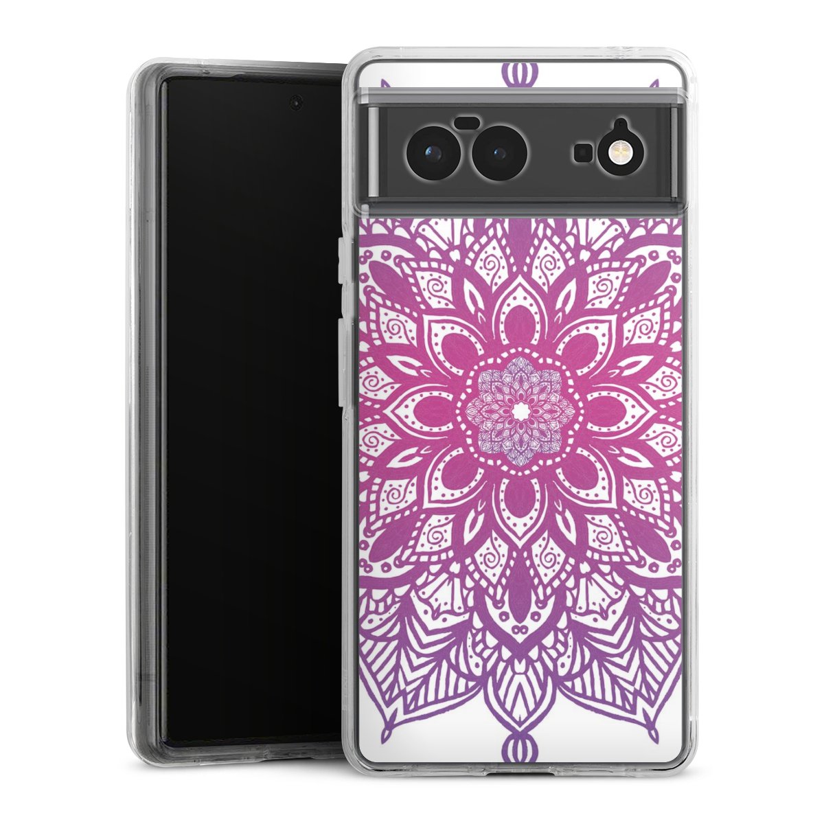 For this phone case we use the solid direct print process. The print area covers the back, the edge remains unprinted. The phone case can be ordered unprinted, fully printed or partially printed.