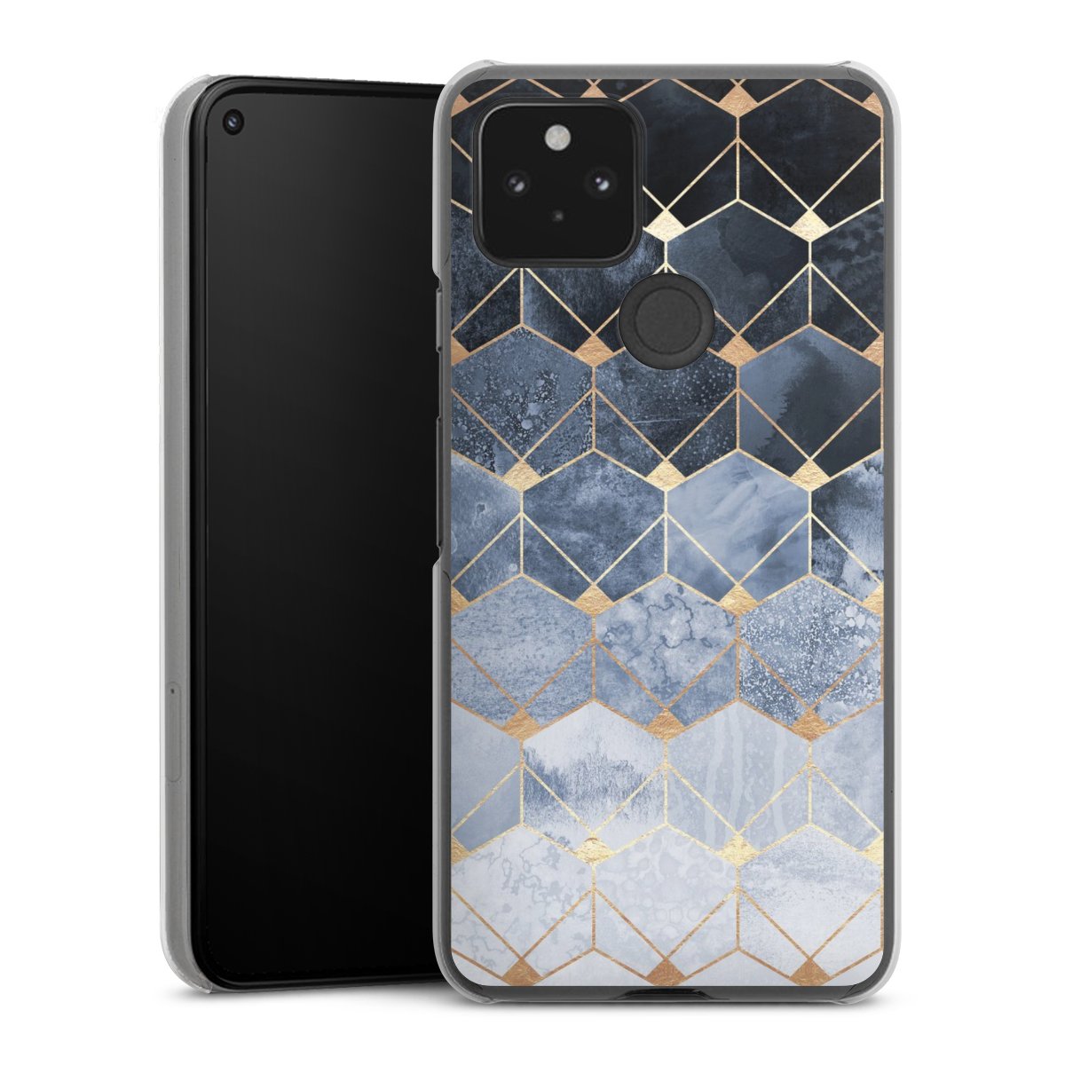 Blue Hexagons And Diamonds Gold Print