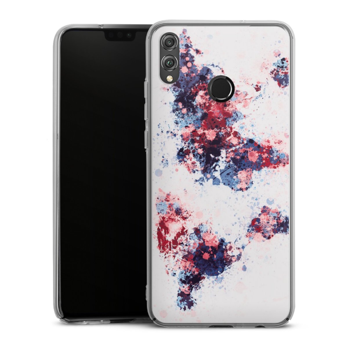 World Map Paint Splashes Blue Red