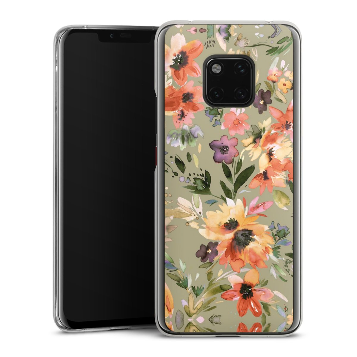 Painterly Tropical Flowers Sage Green