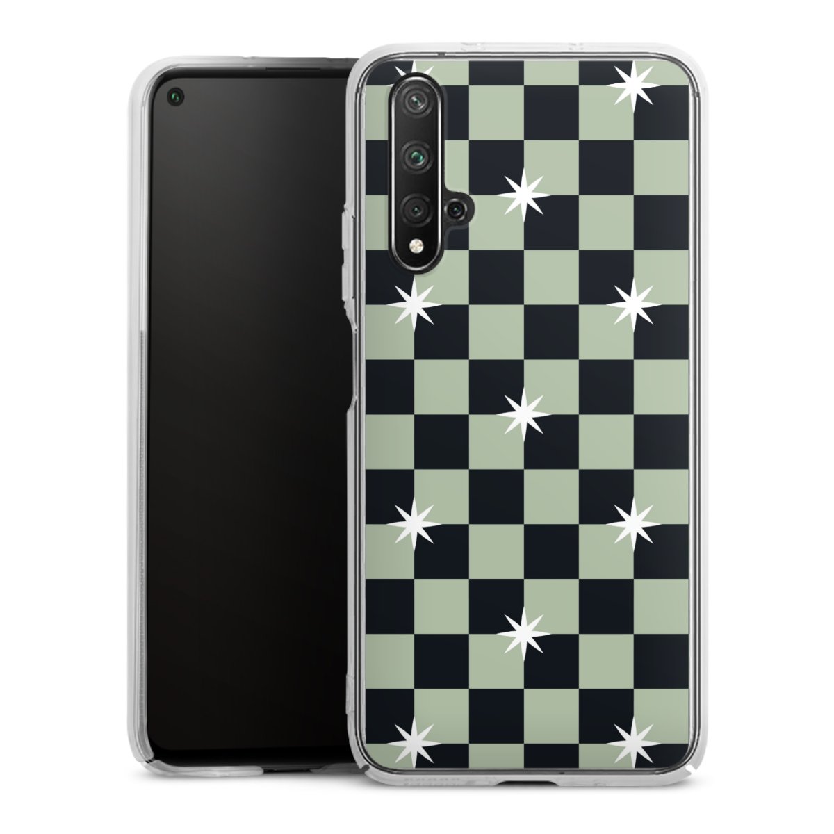 Checked Pattern Black Grey Stars