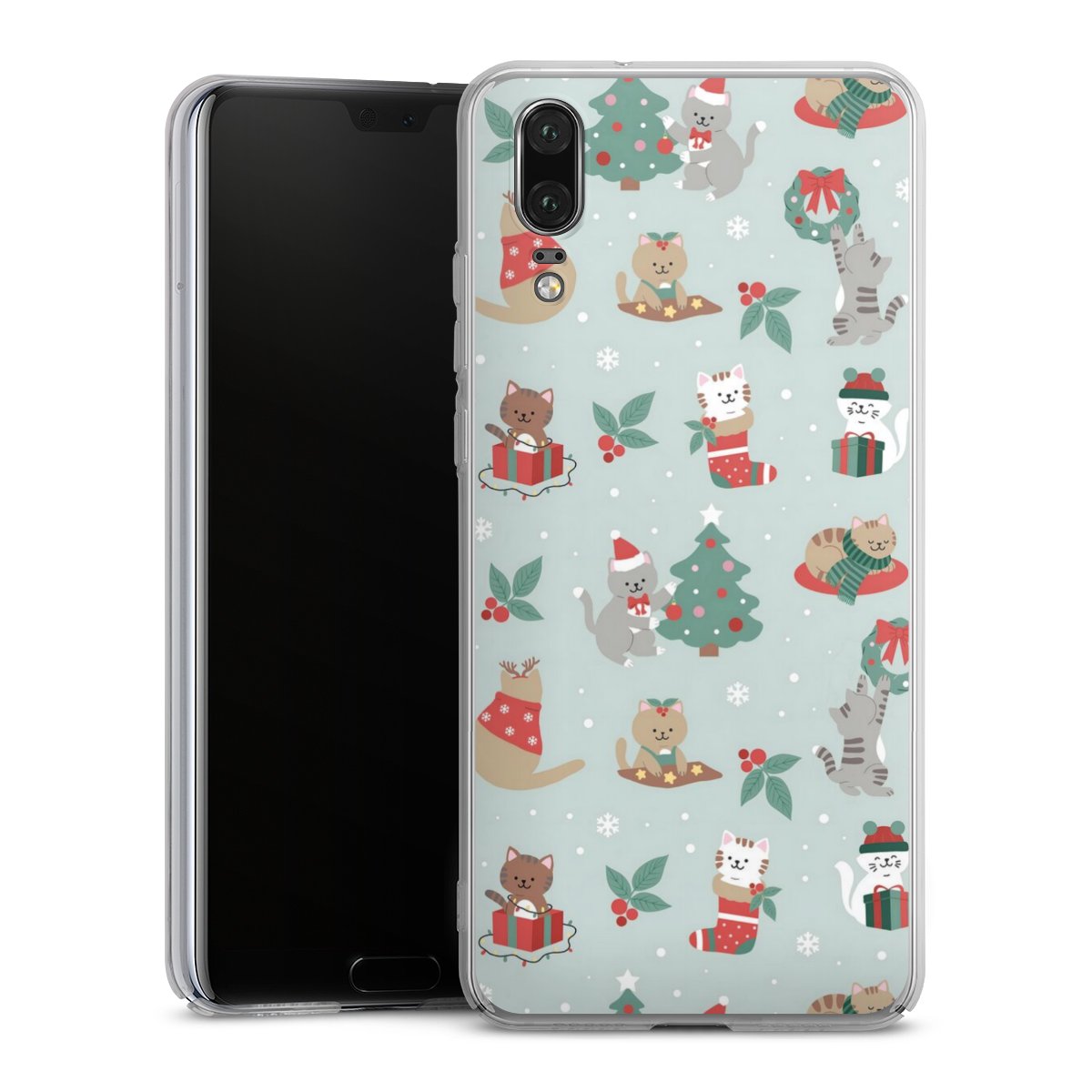 Cute Winter Wonderland Christmas Festive Cats on Teal
