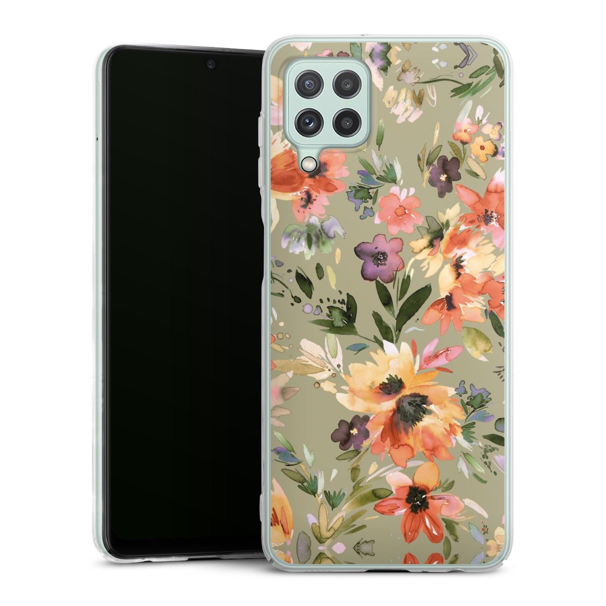 Painterly Tropical Flowers Sage Green