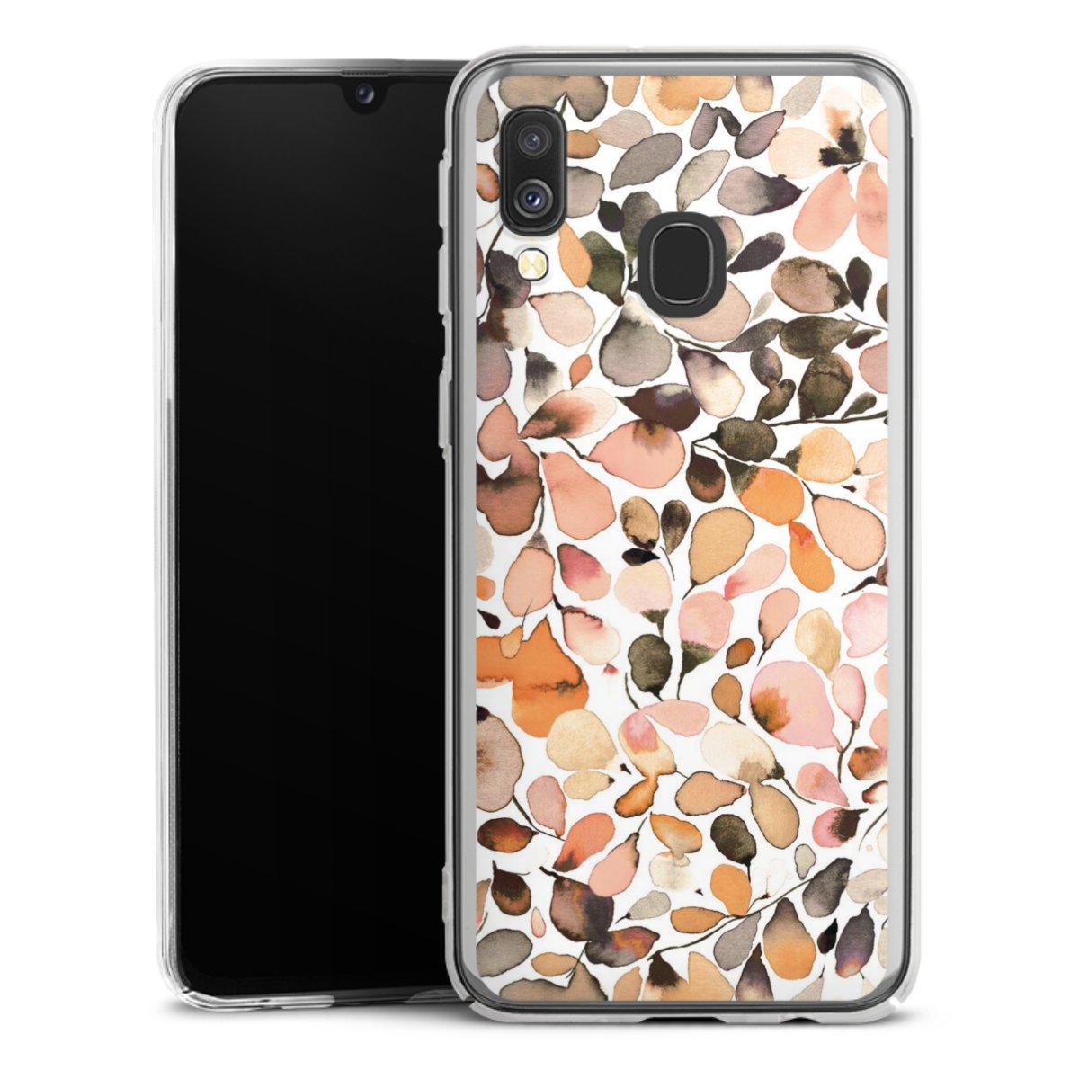 Eucalyptus Watercolor Leaves Dark Brown Autumn