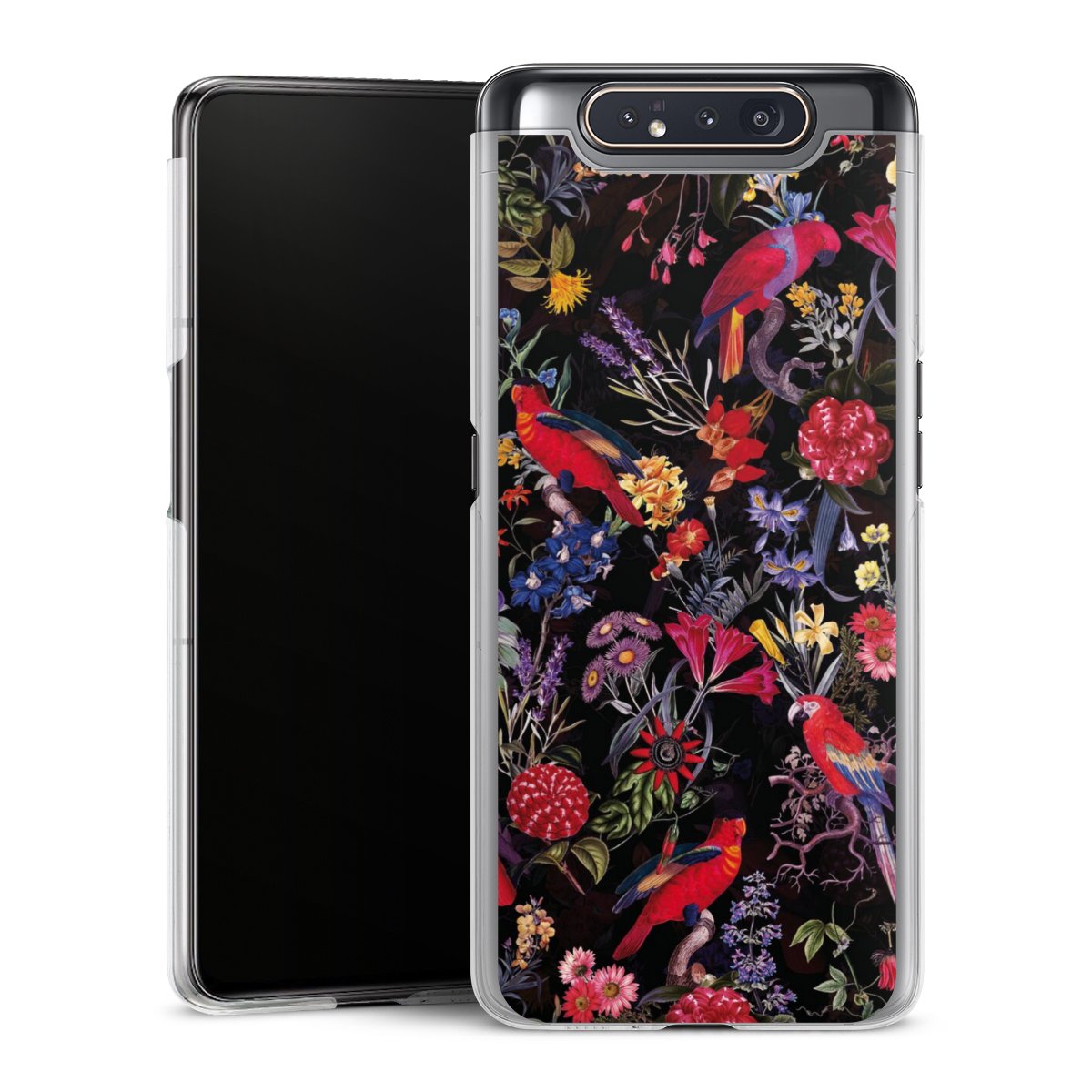 Dark Flowers and Parrots