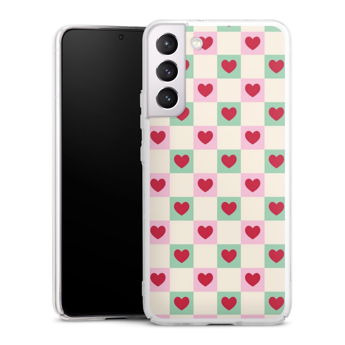 Valentine Checked Hearts Pattern Pink Green