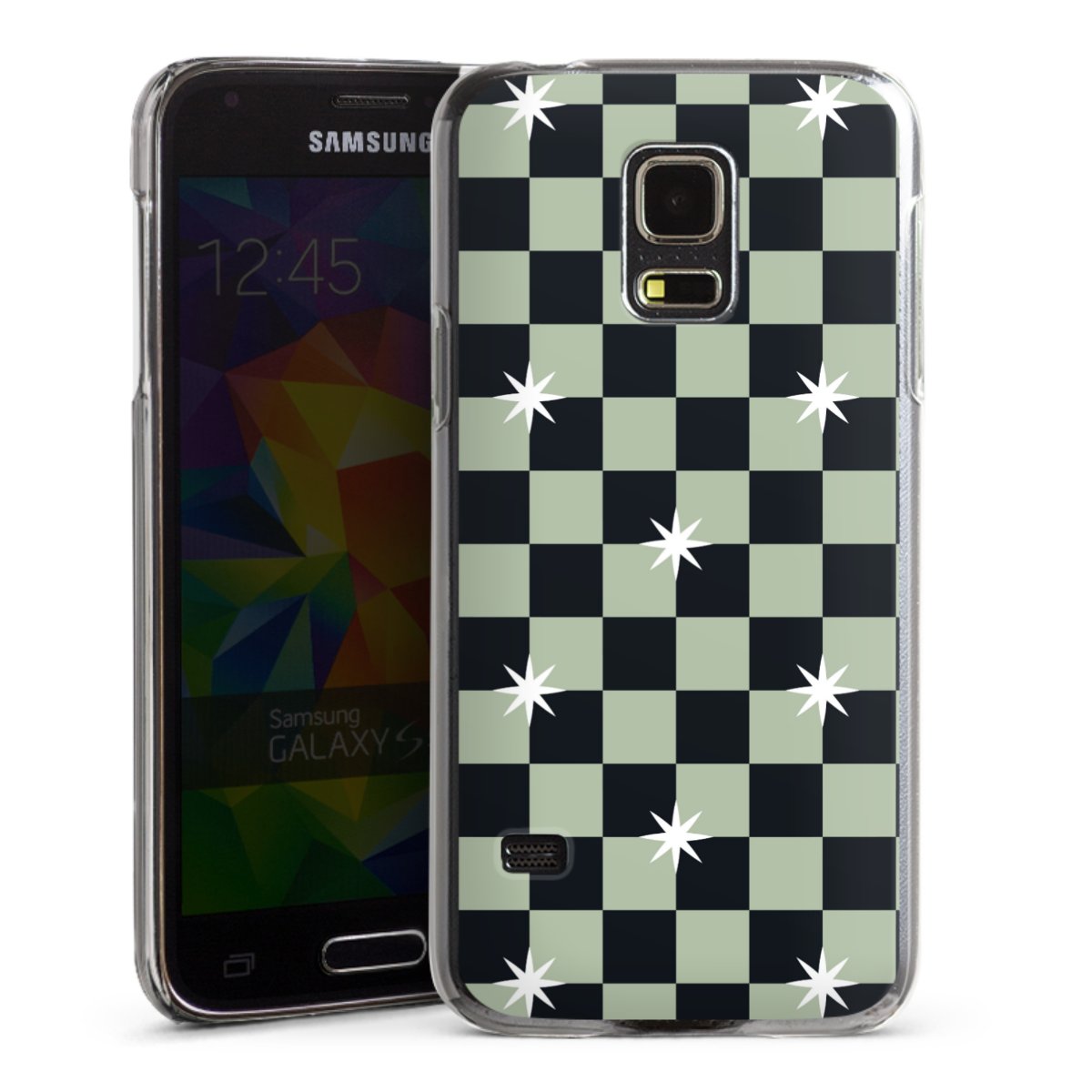 Checked Pattern Black Grey Stars