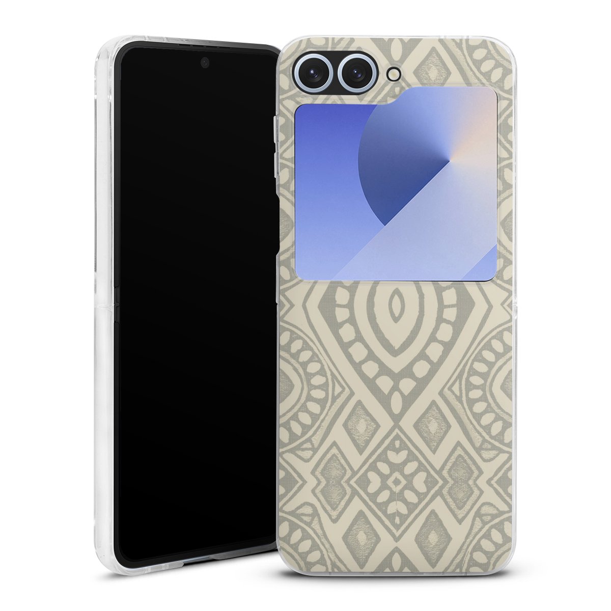 Boho Geometric Mosaic Pattern Neutral Grey and Beige