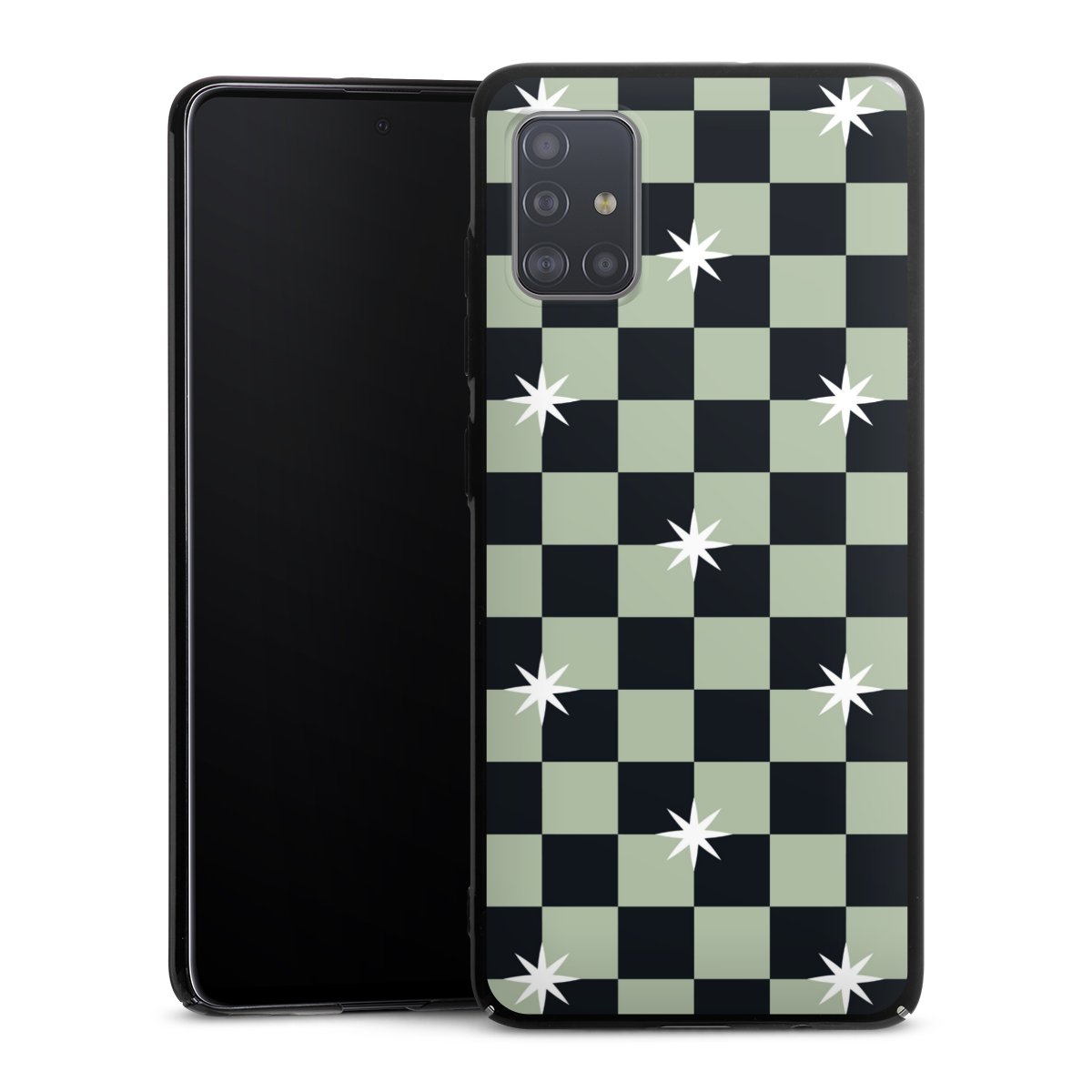 Checked Pattern Black Grey Stars