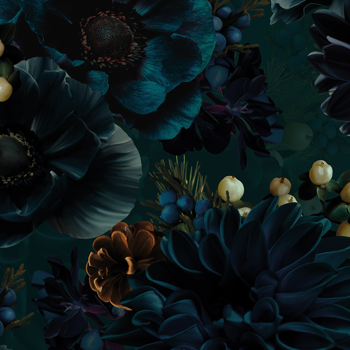 Flowers Pattern Green and Blue