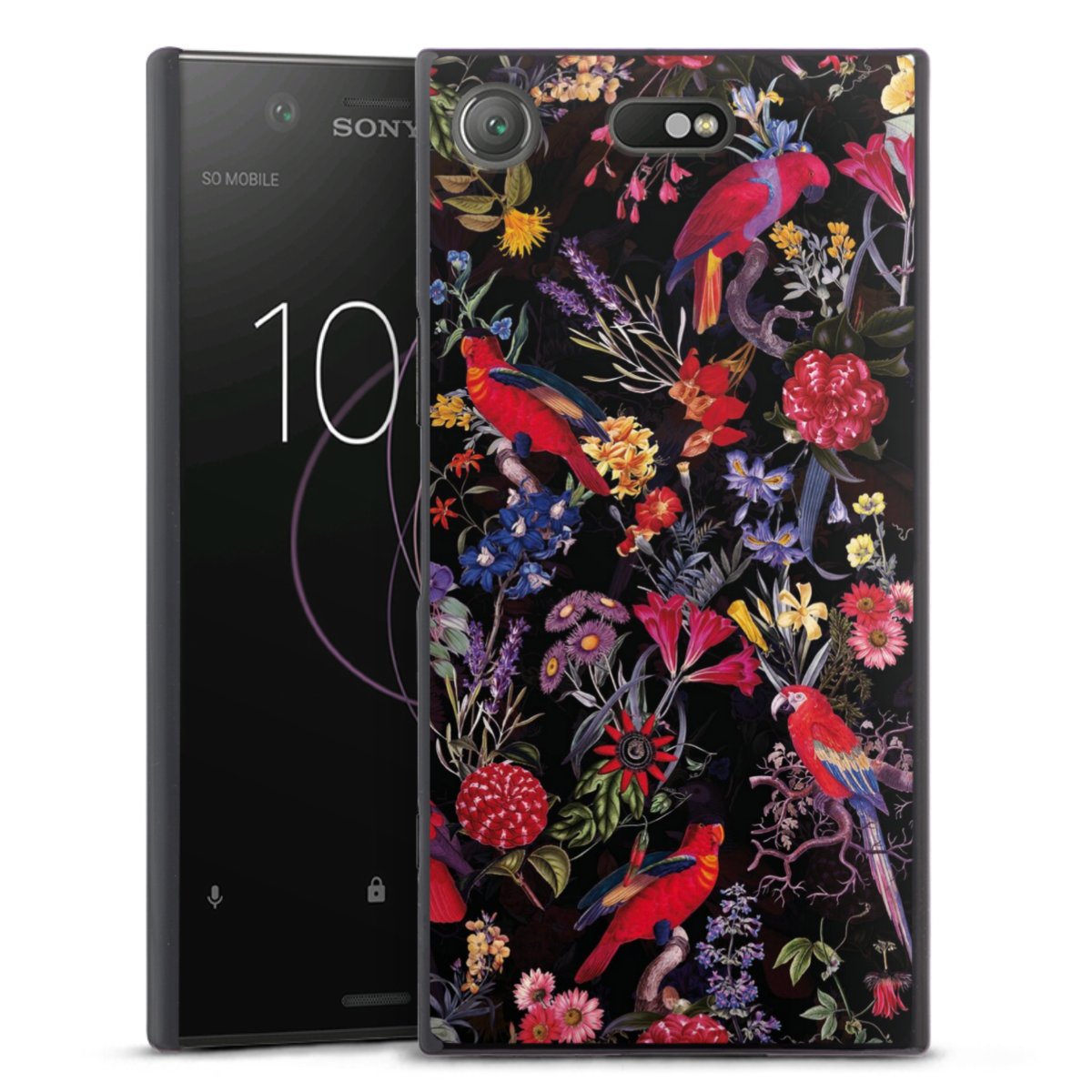 Dark Flowers and Parrots