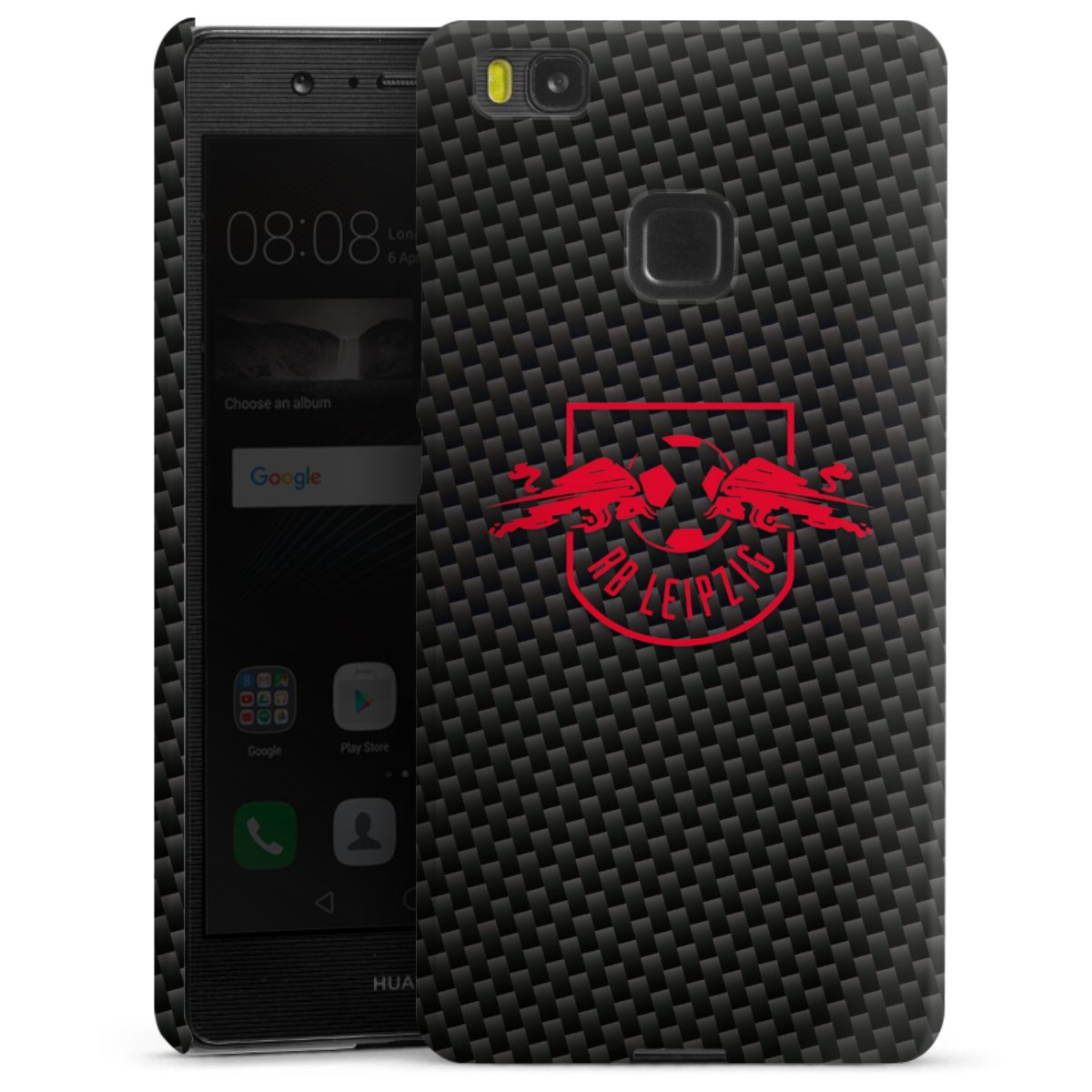 Red RB Leipzig logo on carbon look