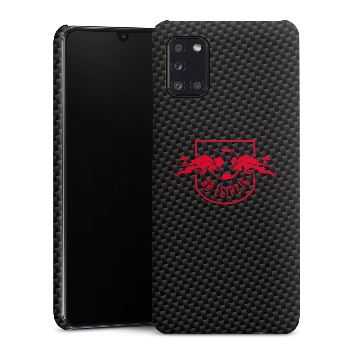 Red RB Leipzig logo on carbon look