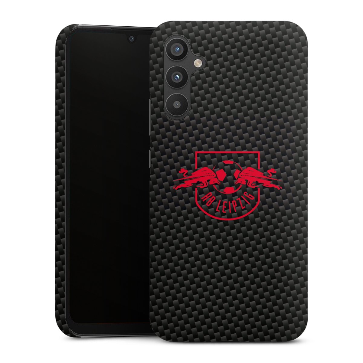 Red RB Leipzig logo on carbon look
