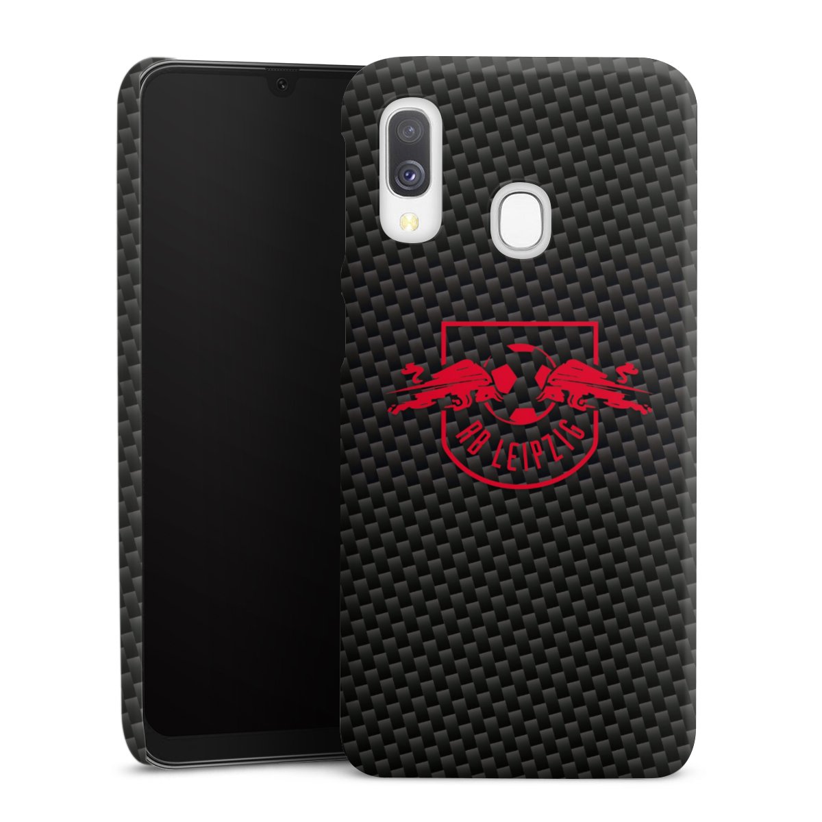 Red RB Leipzig logo on carbon look