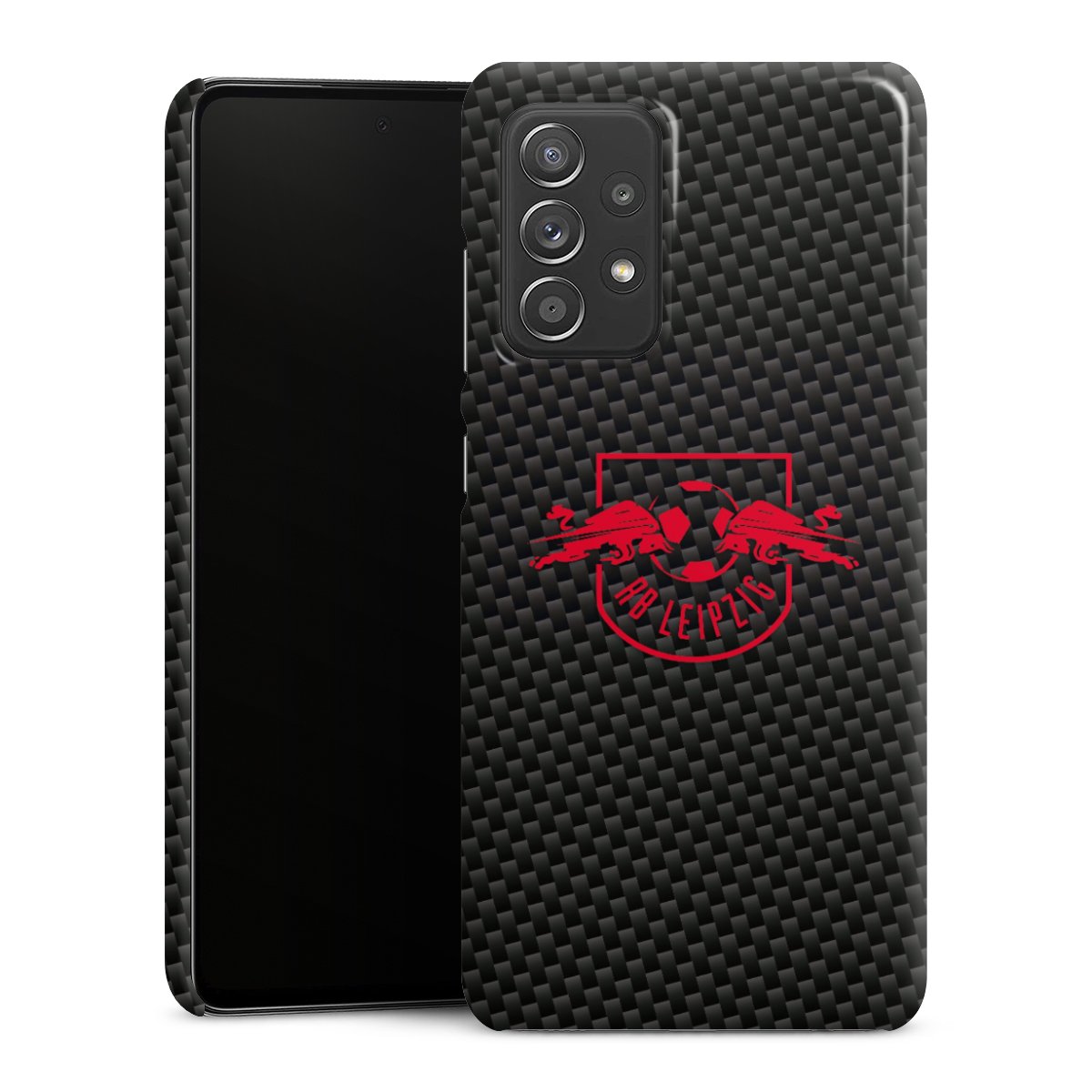 Red RB Leipzig logo on carbon look
