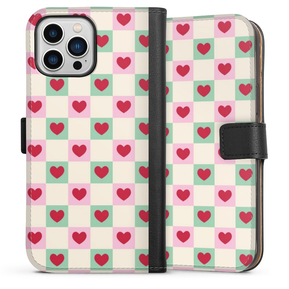 Valentine Checked Hearts Pattern Pink Green