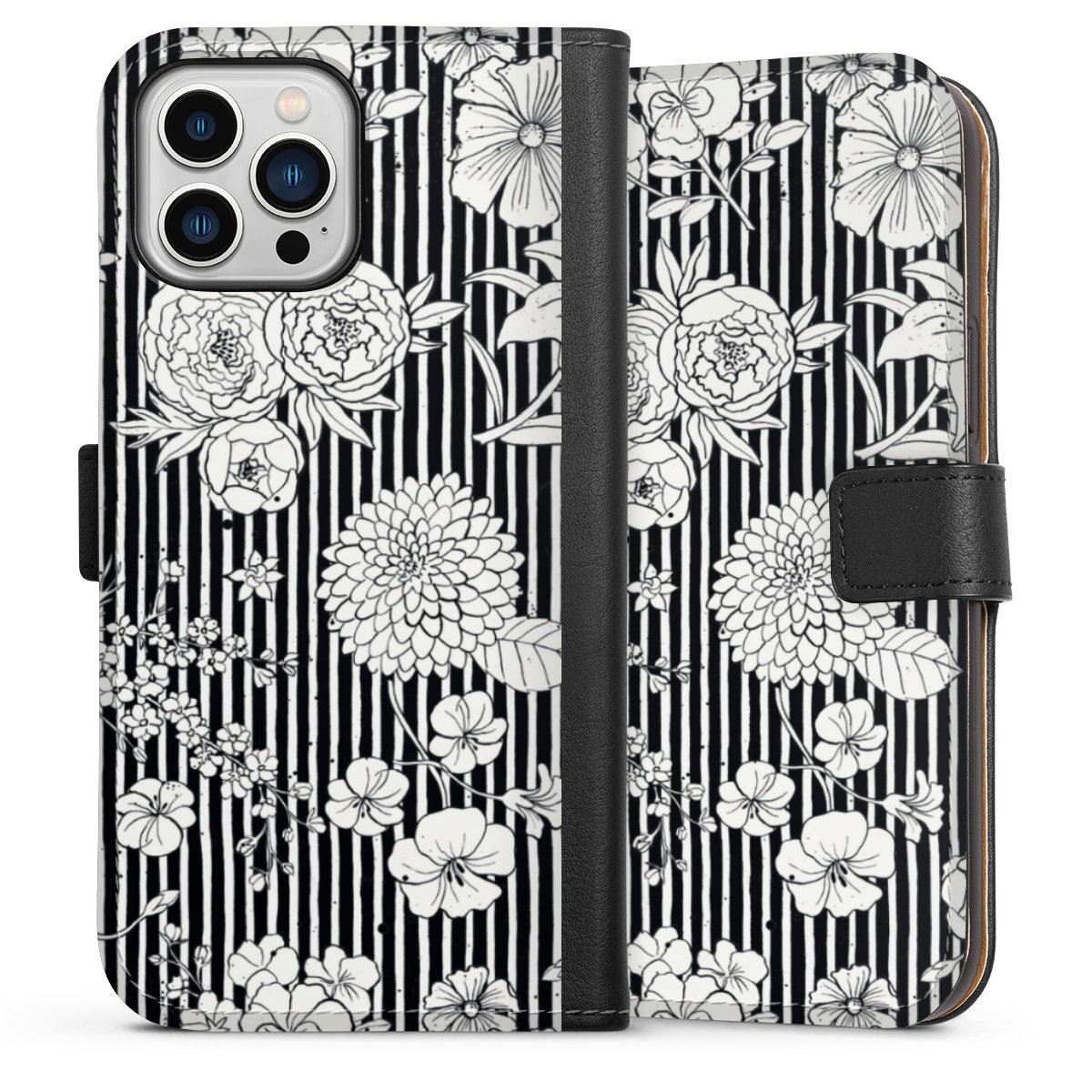 Flowers and Stripes Black and White