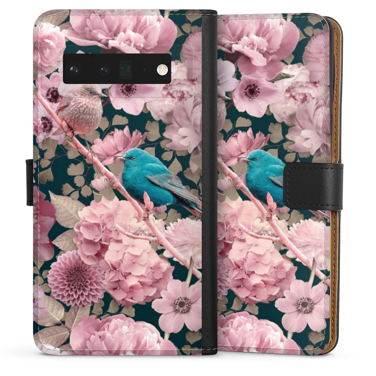 Sparrows in Pink Flower Pattern