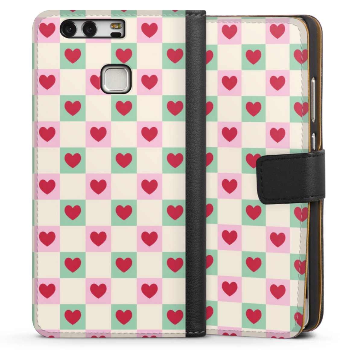Valentine Checked Hearts Pattern Pink Green