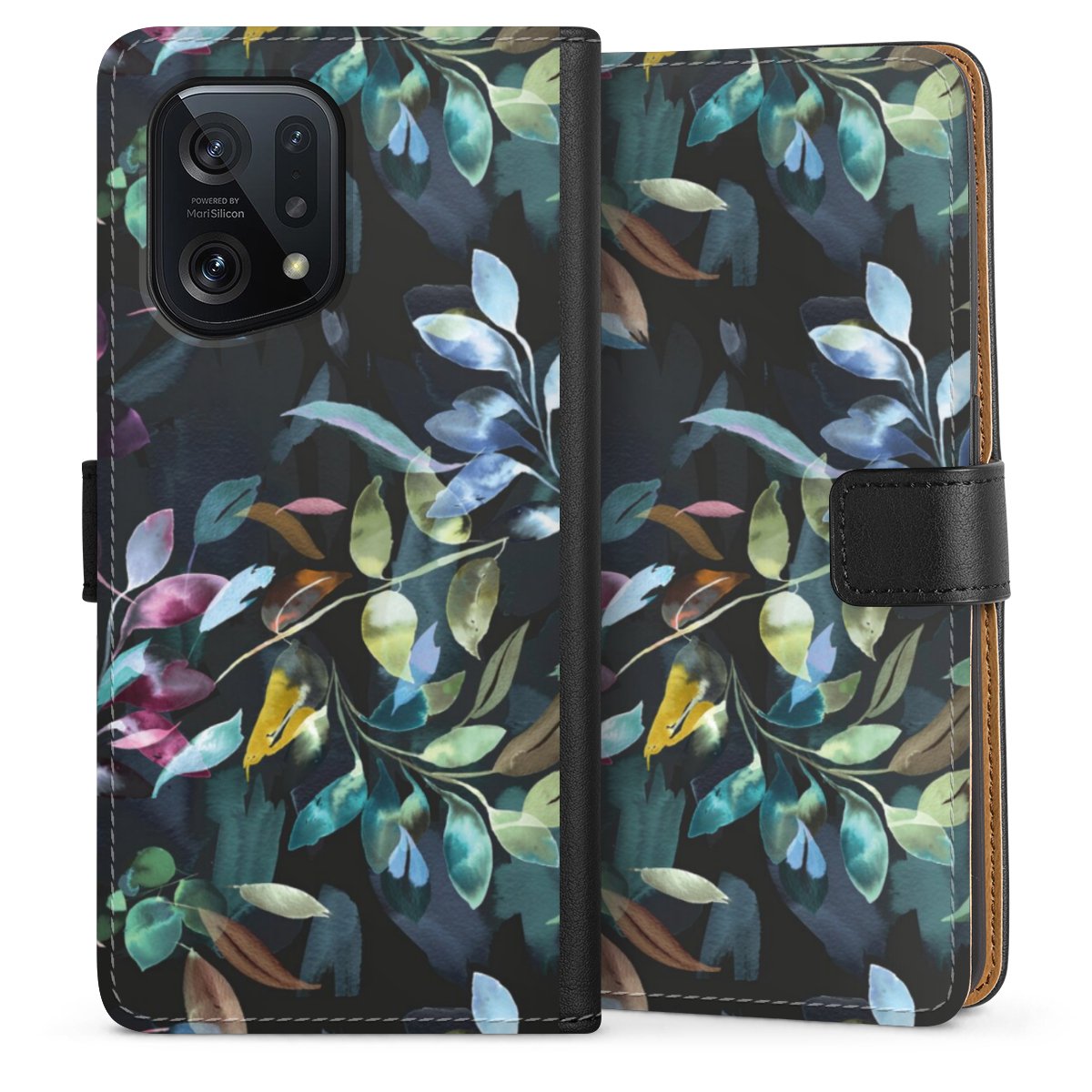 Watercolor Mystic Leaves Black