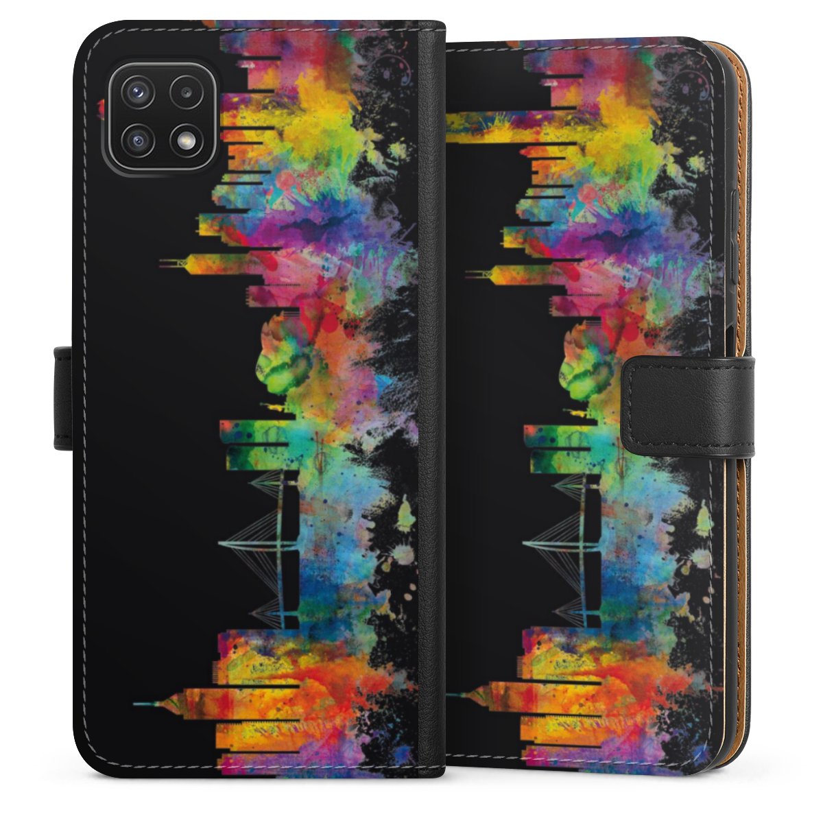 Product details The handy phone bag comes with a polycarbonate hard case on the inside, offering your smartphone secure protection while we are using a highquality, vegan Skai® leather imitate to form the flap and the outside of the case. You can open the flap sidewards and slots for money bills and business cars are included. The case closes with an magnetic flap.