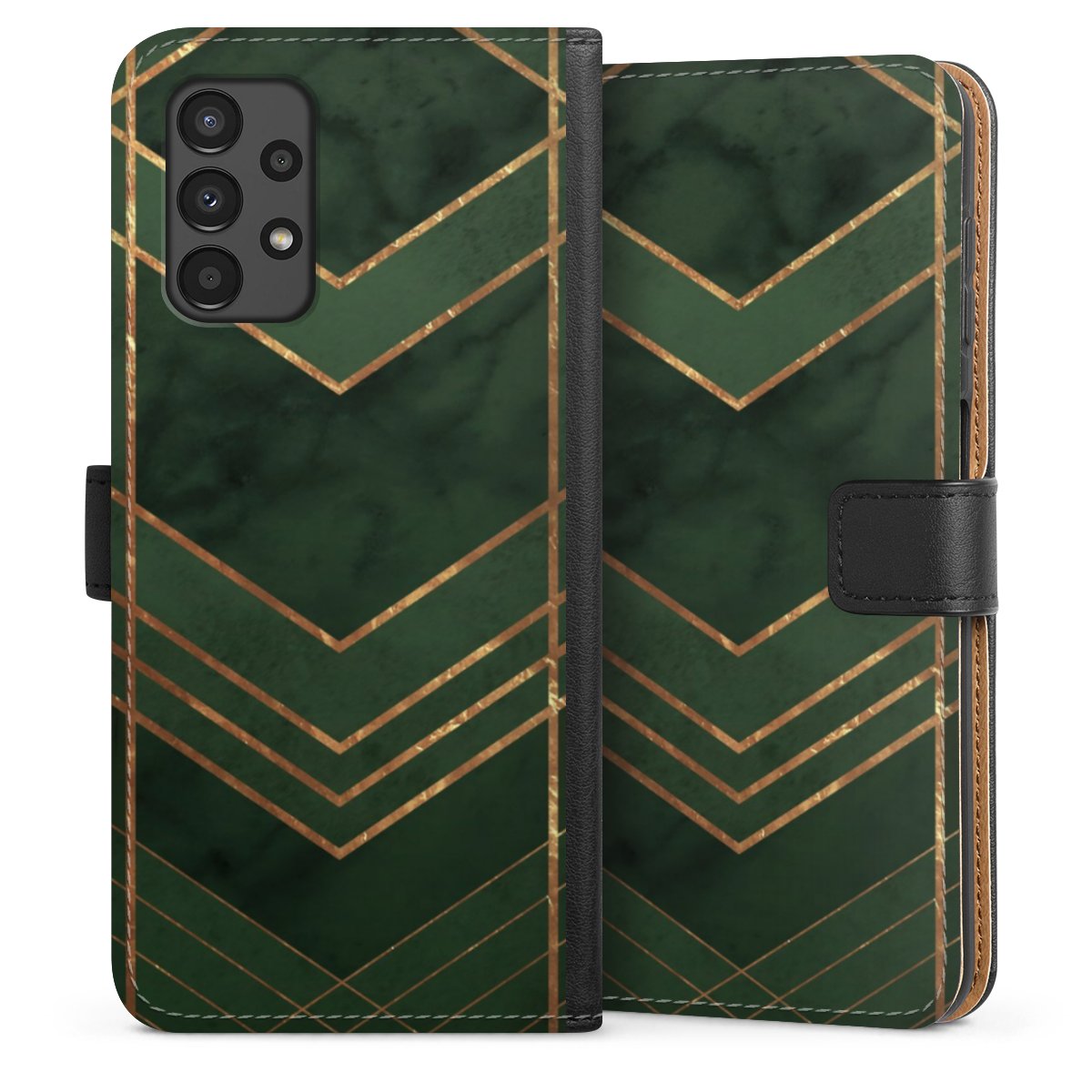 Dark Green Pattern Golden Stripes