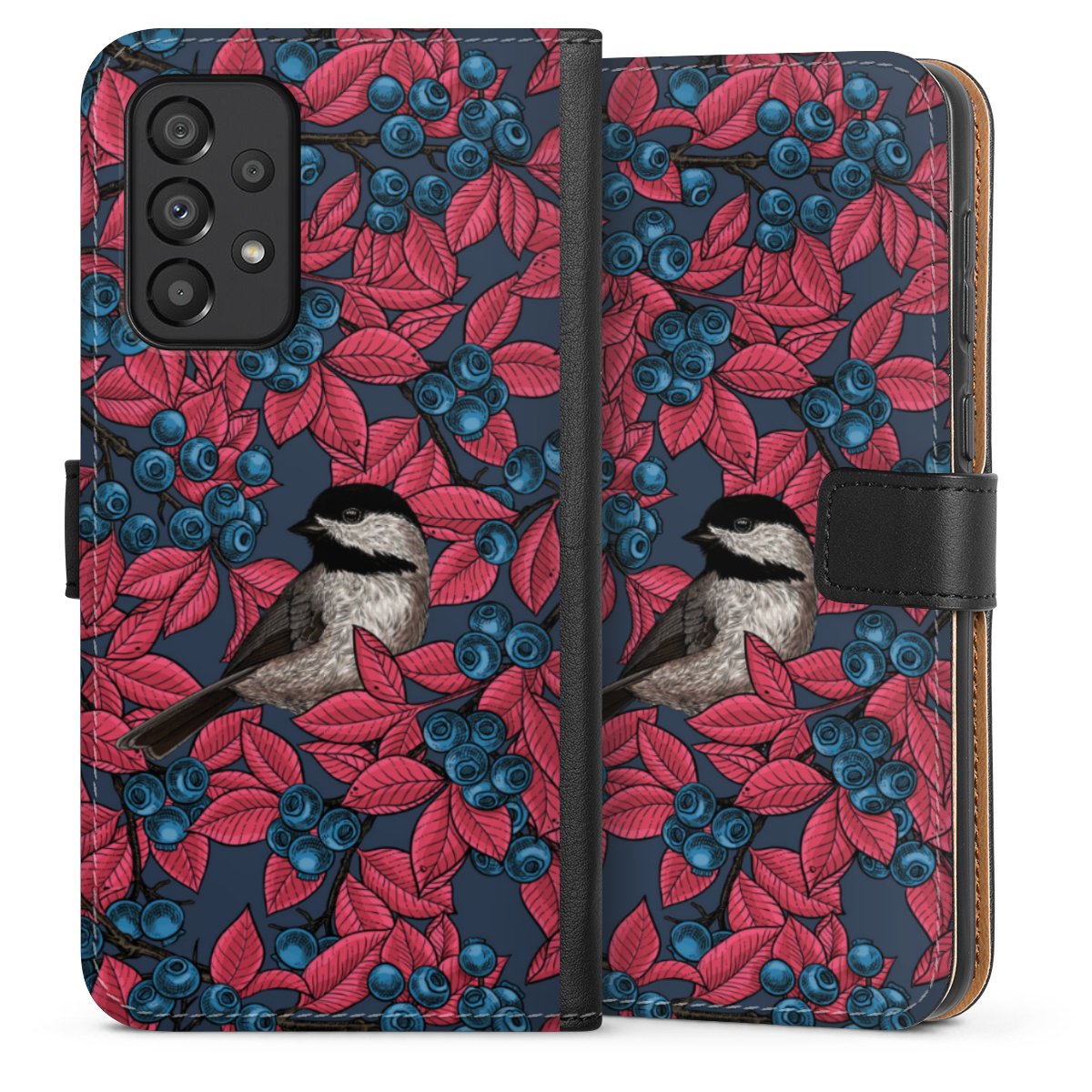 Blueberries And Birds On Navy