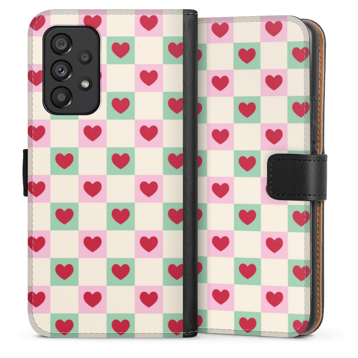 Valentine Checked Hearts Pattern Pink Green