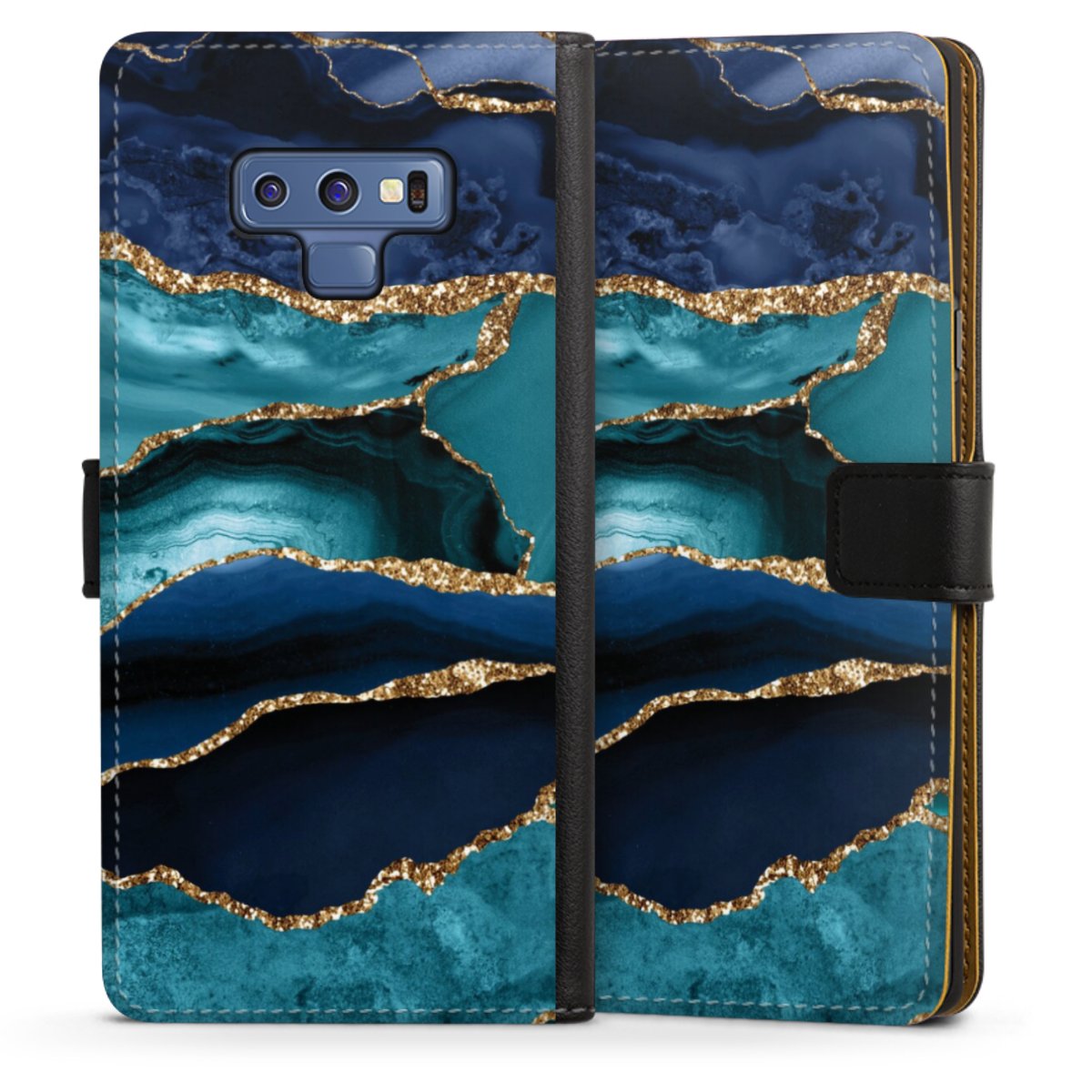 Dark and Light Blue Marble Gold Glitter Look