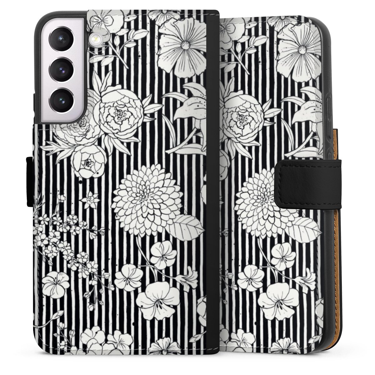 Flowers and Stripes Black and White