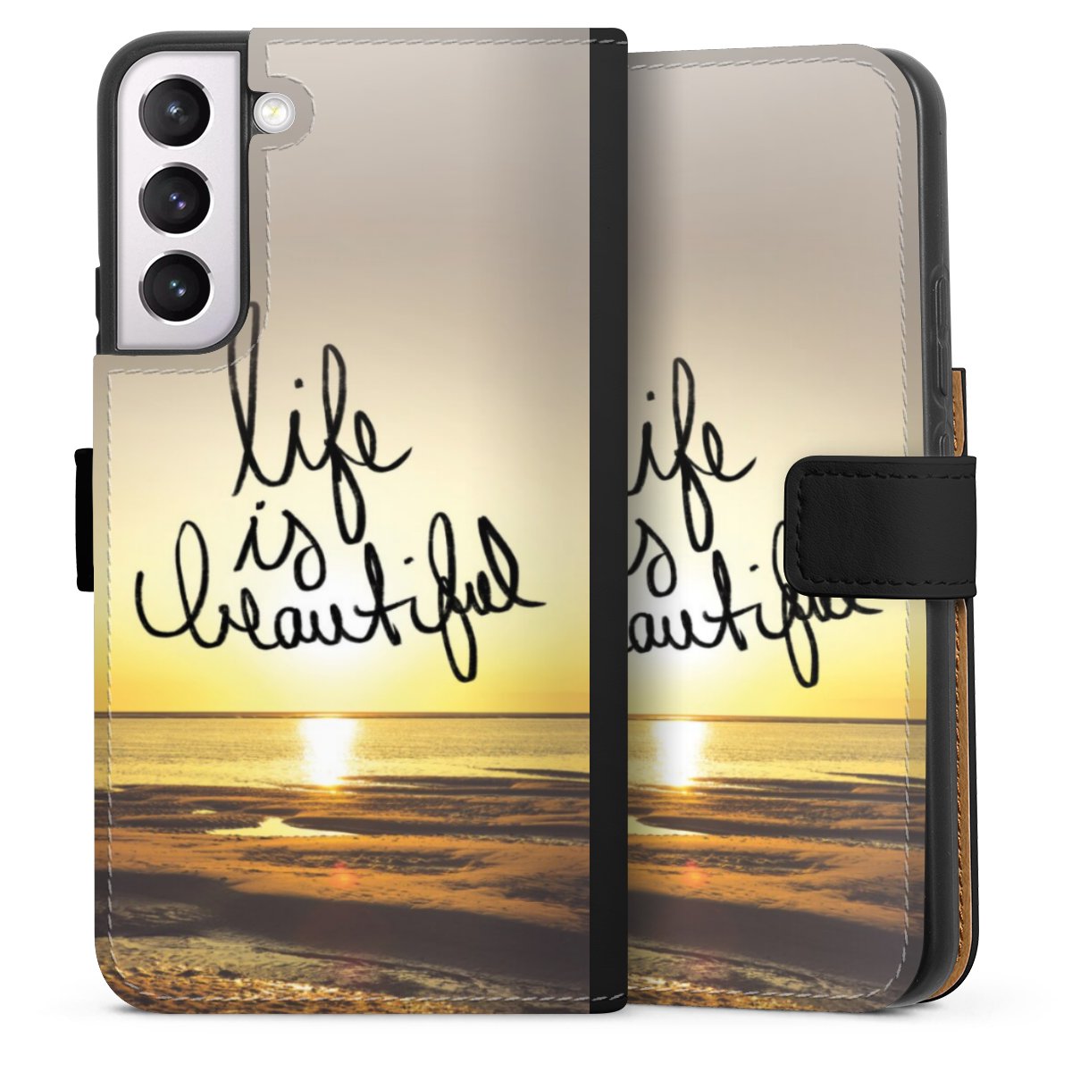 Print technology For our Sideflip Case we are using our advanced direct printing technology. The back and frontside are fully printabale, the inside of the phone bag is left unprinted. You can order the phone case without print, printed completely or also with a partial print.