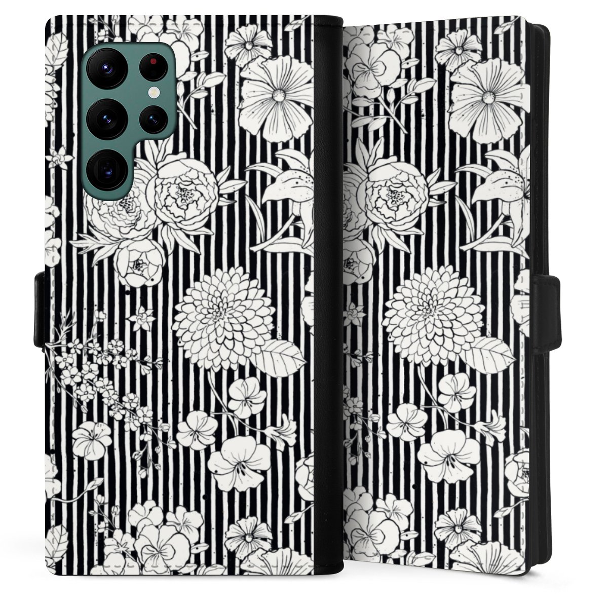 Flowers and Stripes Black and White