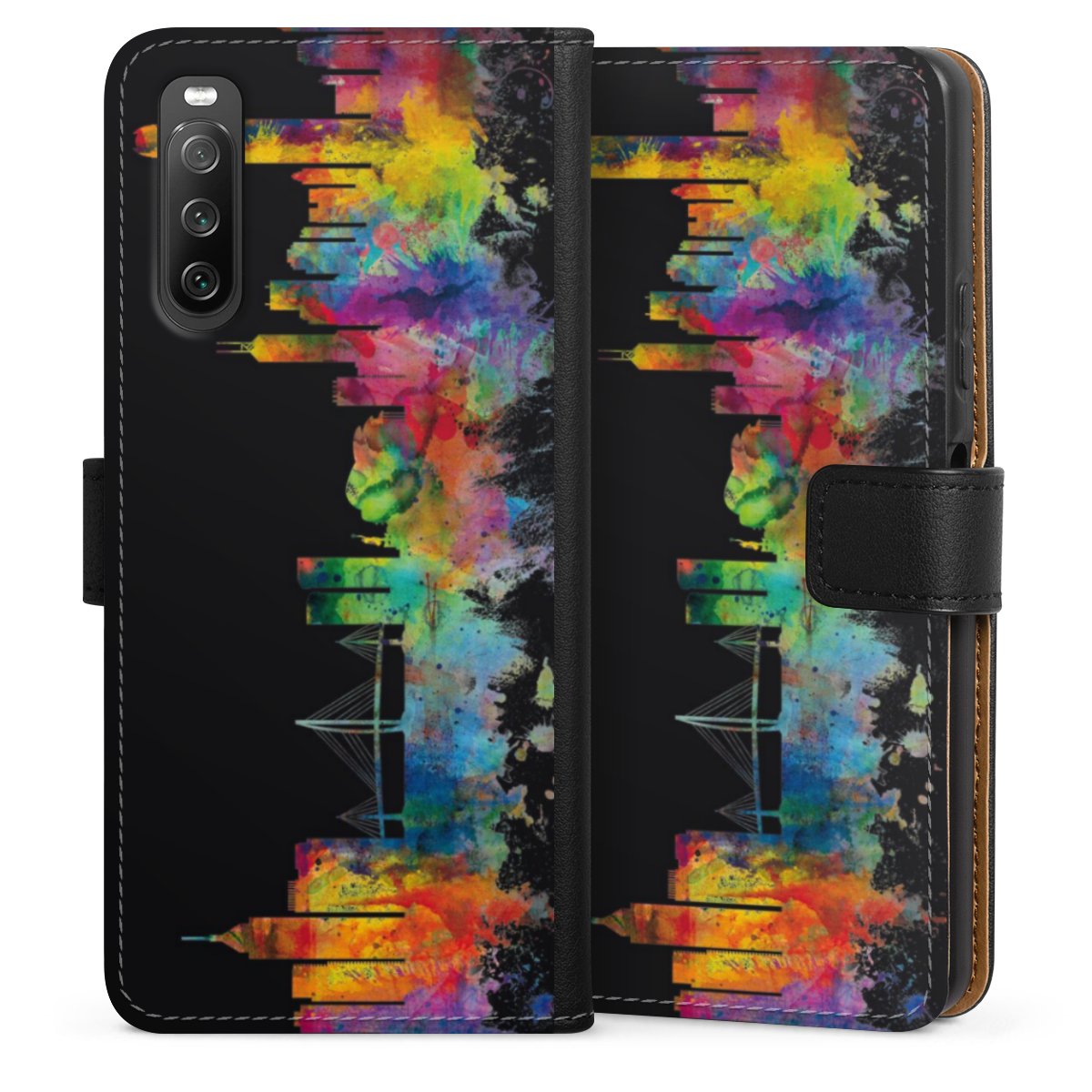 Product details The handy phone bag comes with a polycarbonate hard case on the inside, offering your smartphone secure protection while we are using a highquality, vegan Skai® leather imitate to form the flap and the outside of the case. You can open the flap sidewards and slots for money bills and business cars are included. The case closes with an magnetic flap.