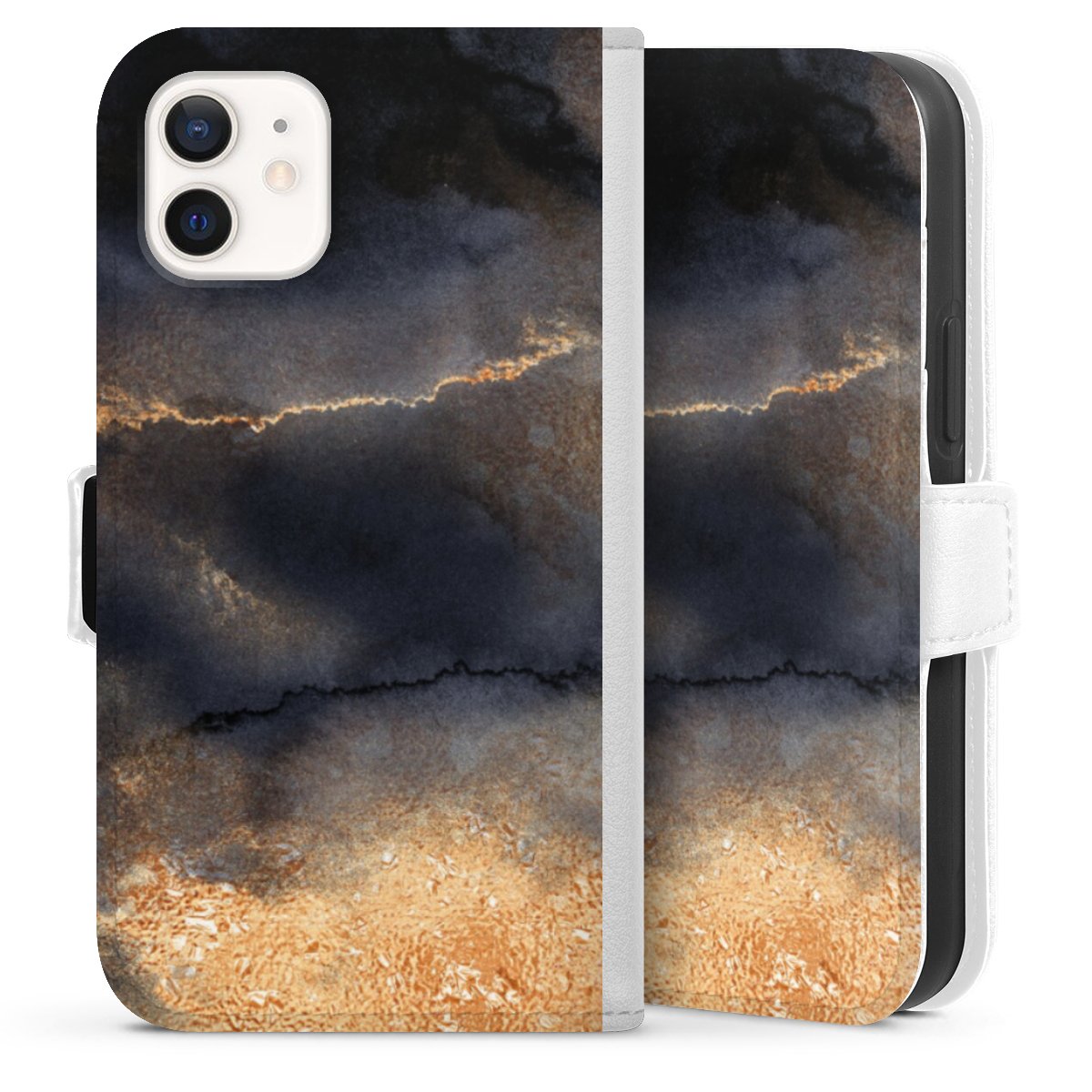 For our Sideflip Case we are using our advanced direct printing technology. The back and frontside are fully printabale, the inside of the phone bag is left unprinted. You can order the phone case without print, printed completely or also with a partial print.