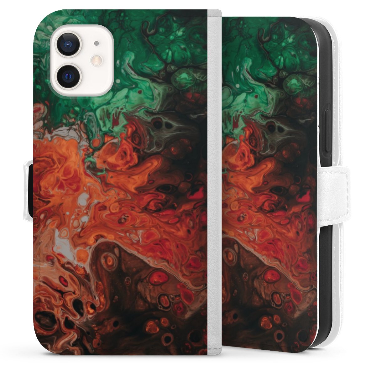 For our Sideflip Case we are using our advanced direct printing technology. The back and frontside are fully printabale, the inside of the phone bag is left unprinted. You can order the phone case without print, printed completely or also with a partial print.