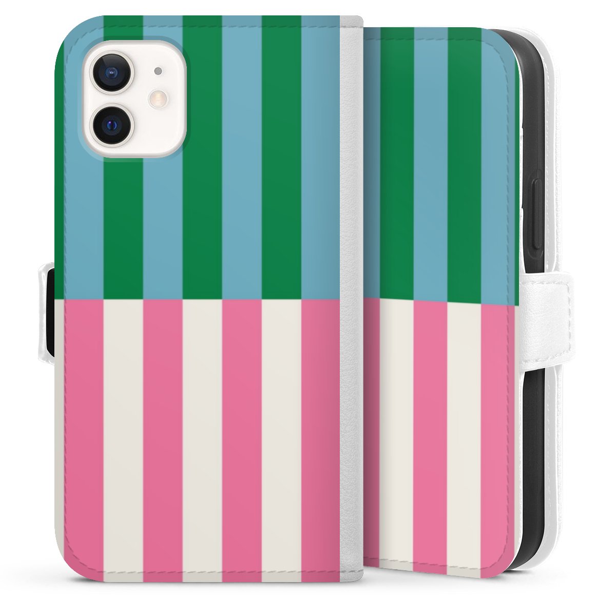 For our Sideflip Case we are using our advanced direct printing technology. The back and frontside are fully printabale, the inside of the phone bag is left unprinted. You can order the phone case without print, printed completely or also with a partial print.