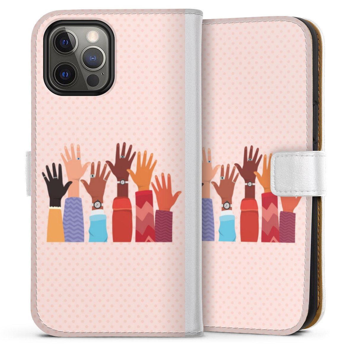 For our Sideflip Case we are using our advanced direct printing technology. The back and frontside are fully printabale, the inside of the phone bag is left unprinted. You can order the phone case without print, printed completely or also with a partial print.