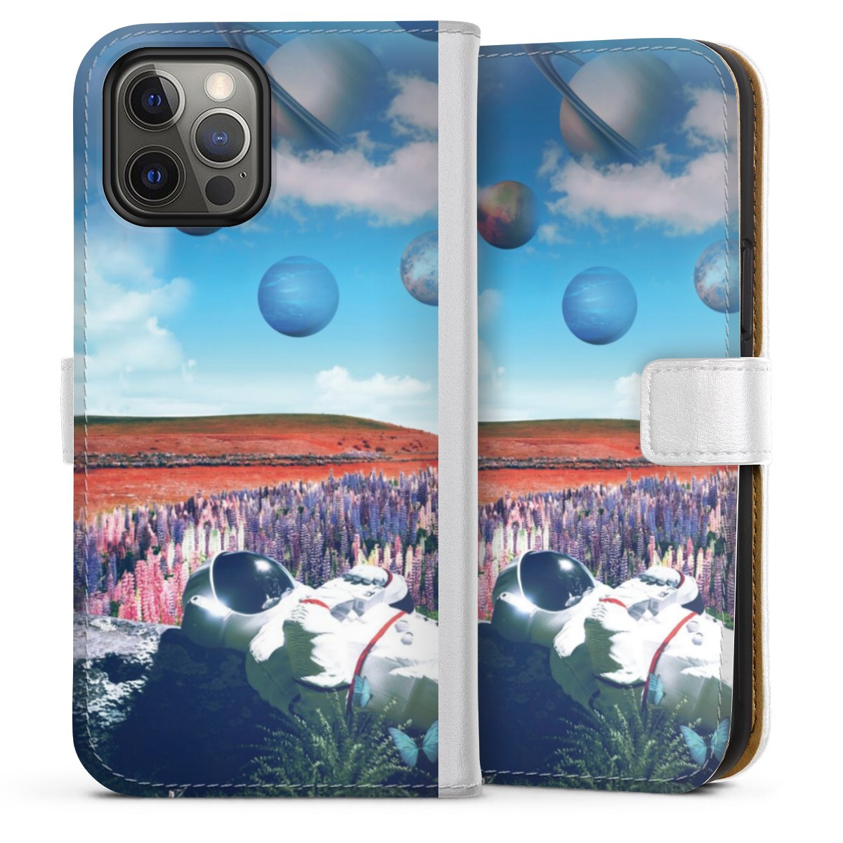 For our Sideflip Case we are using our advanced direct printing technology. The back and frontside are fully printabale, the inside of the phone bag is left unprinted. You can order the phone case without print, printed completely or also with a partial print.