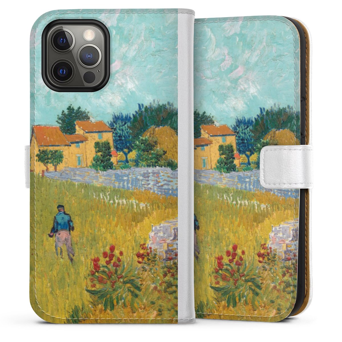 For our Sideflip Case we are using our advanced direct printing technology. The back and frontside are fully printabale, the inside of the phone bag is left unprinted. You can order the phone case without print, printed completely or also with a partial print.