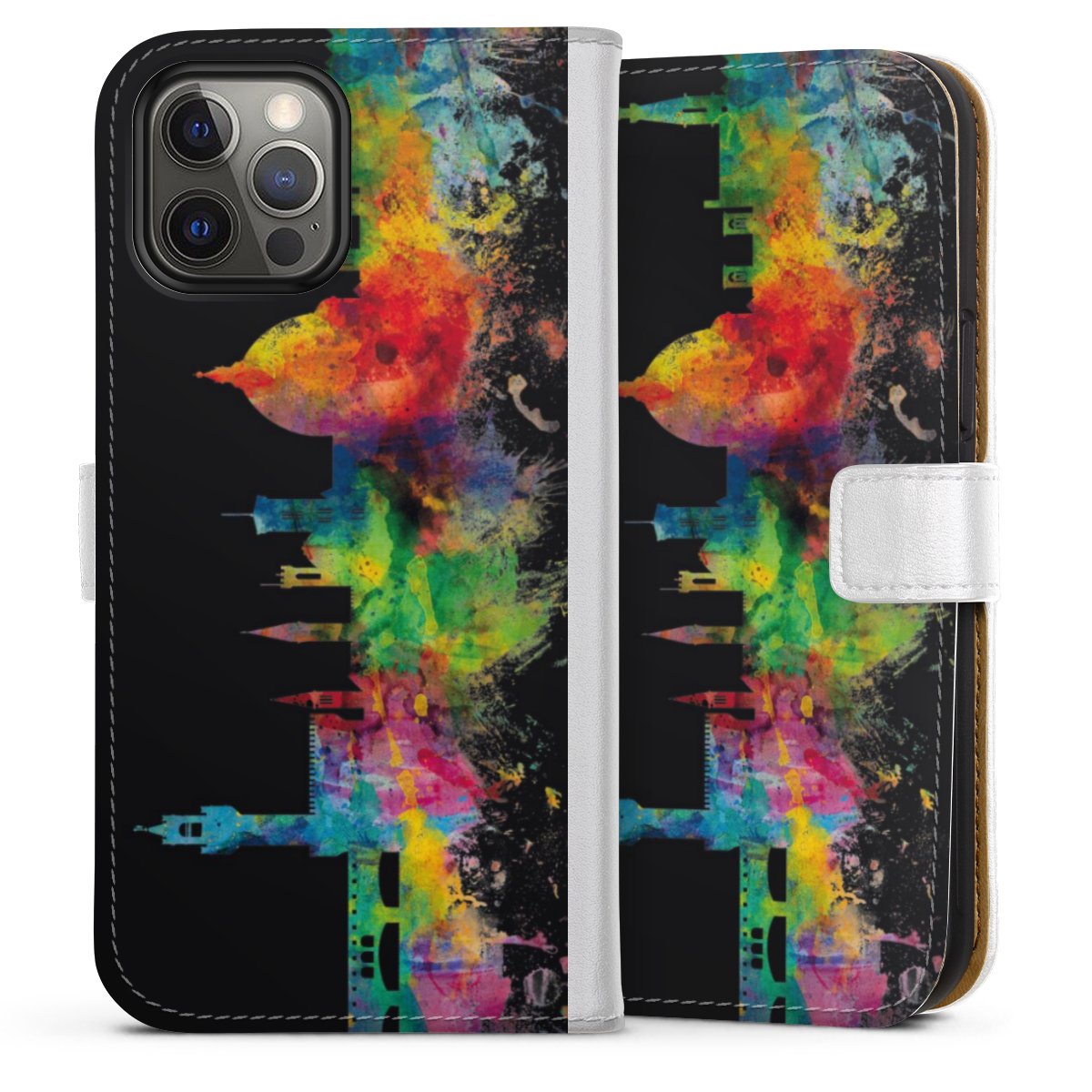 For our Sideflip Case we are using our advanced direct printing technology. The back and frontside are fully printabale, the inside of the phone bag is left unprinted. You can order the phone case without print, printed completely or also with a partial print.