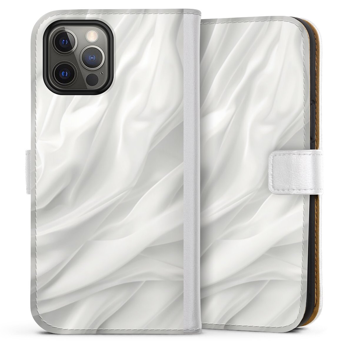 For our Sideflip Case we are using our advanced direct printing technology. The back and frontside are fully printabale, the inside of the phone bag is left unprinted. You can order the phone case without print, printed completely or also with a partial print.