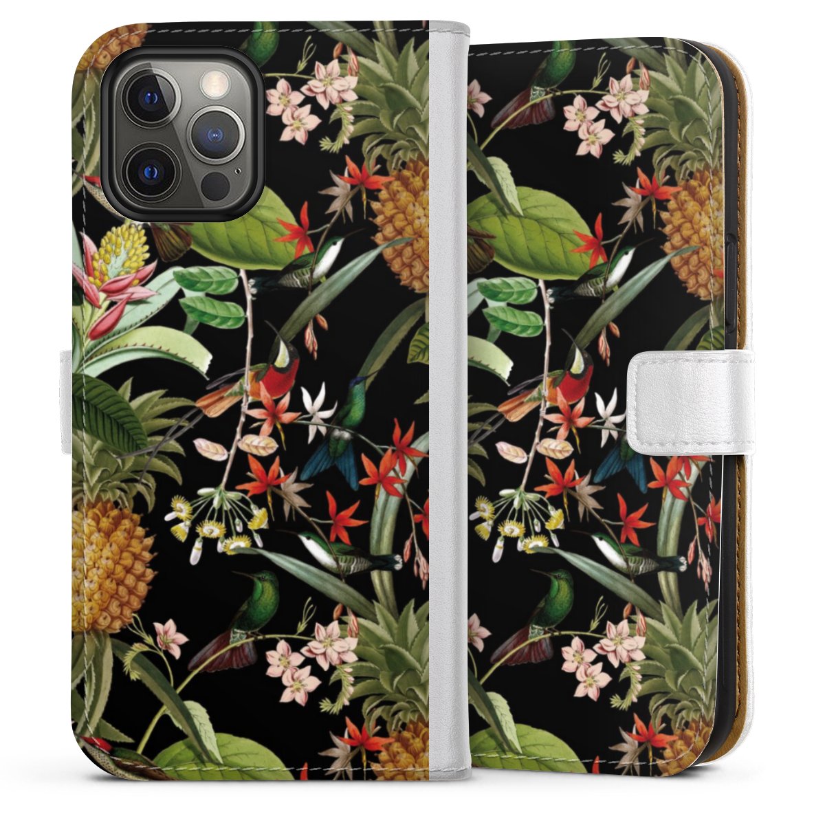 For our Sideflip Case we are using our advanced direct printing technology. The back and frontside are fully printabale, the inside of the phone bag is left unprinted. You can order the phone case without print, printed completely or also with a partial print.