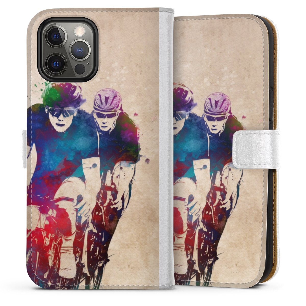 For our Sideflip Case we are using our advanced direct printing technology. The back and frontside are fully printabale, the inside of the phone bag is left unprinted. You can order the phone case without print, printed completely or also with a partial print.