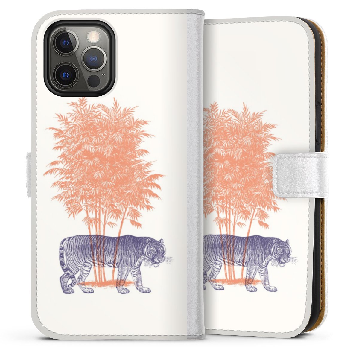 For our Sideflip Case we are using our advanced direct printing technology. The back and frontside are fully printabale, the inside of the phone bag is left unprinted. You can order the phone case without print, printed completely or also with a partial print.
