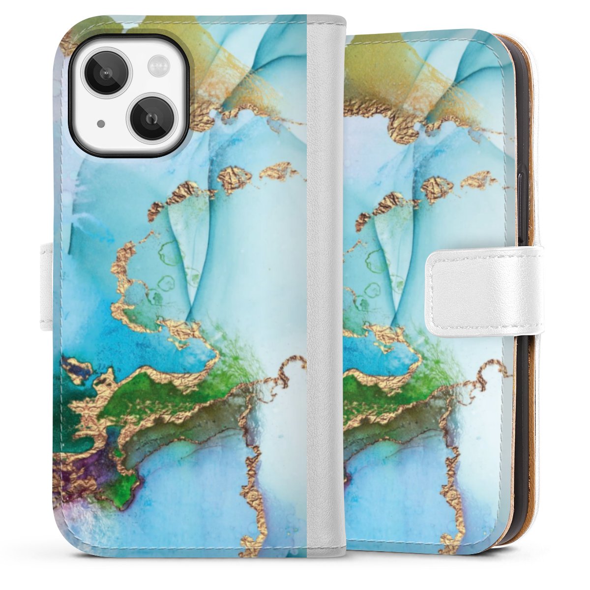 For our Sideflip Case we are using our advanced direct printing technology. The back and frontside are fully printabale, the inside of the phone bag is left unprinted. You can order the phone case without print, printed completely or also with a partial print.