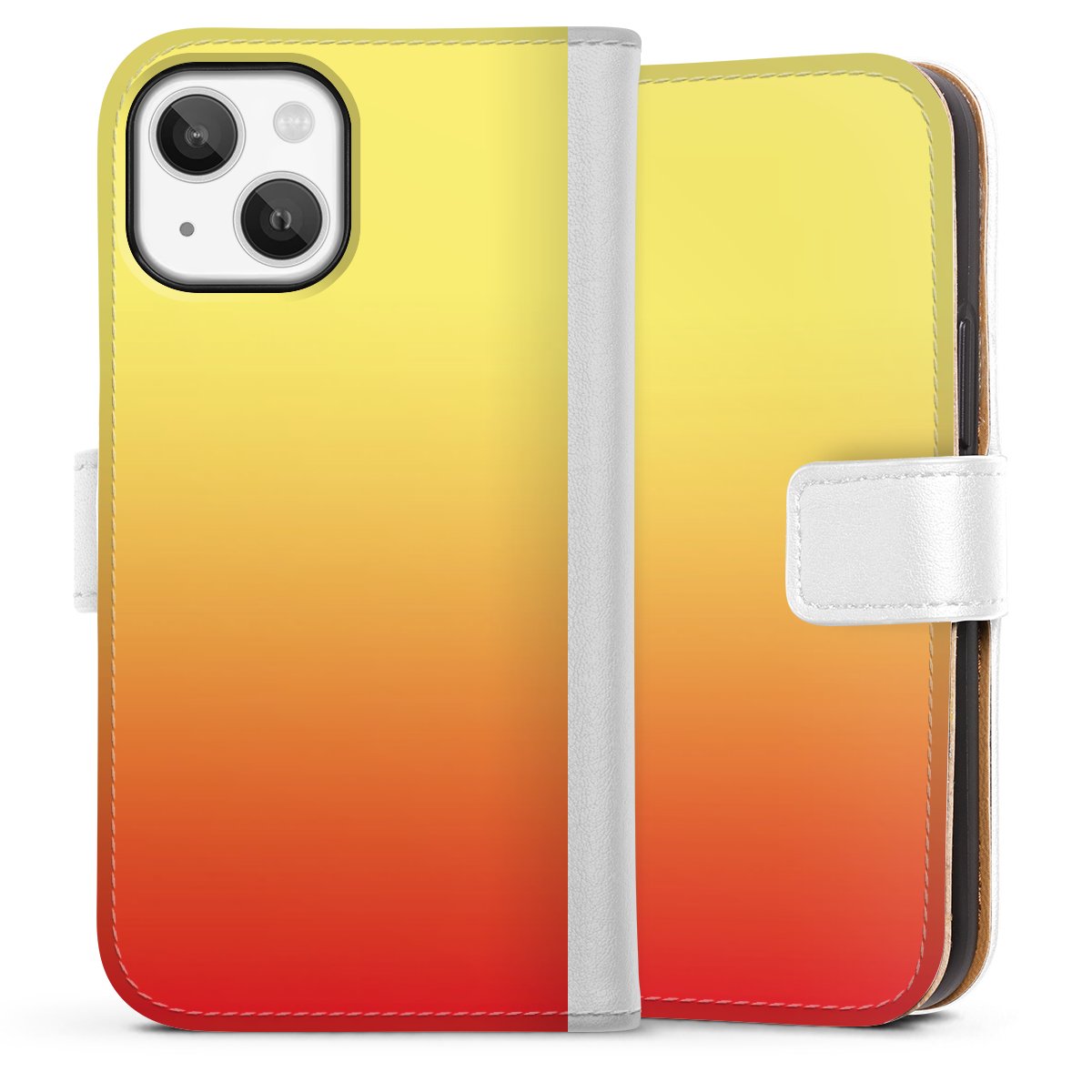 For our Sideflip Case we are using our advanced direct printing technology. The back and frontside are fully printabale, the inside of the phone bag is left unprinted. You can order the phone case without print, printed completely or also with a partial print.