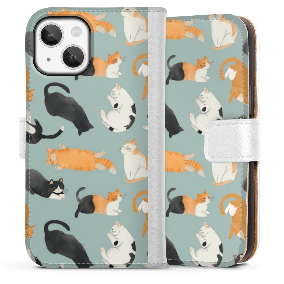 For our Sideflip Case we are using our advanced direct printing technology. The back and frontside are fully printabale, the inside of the phone bag is left unprinted. You can order the phone case without print, printed completely or also with a partial print.