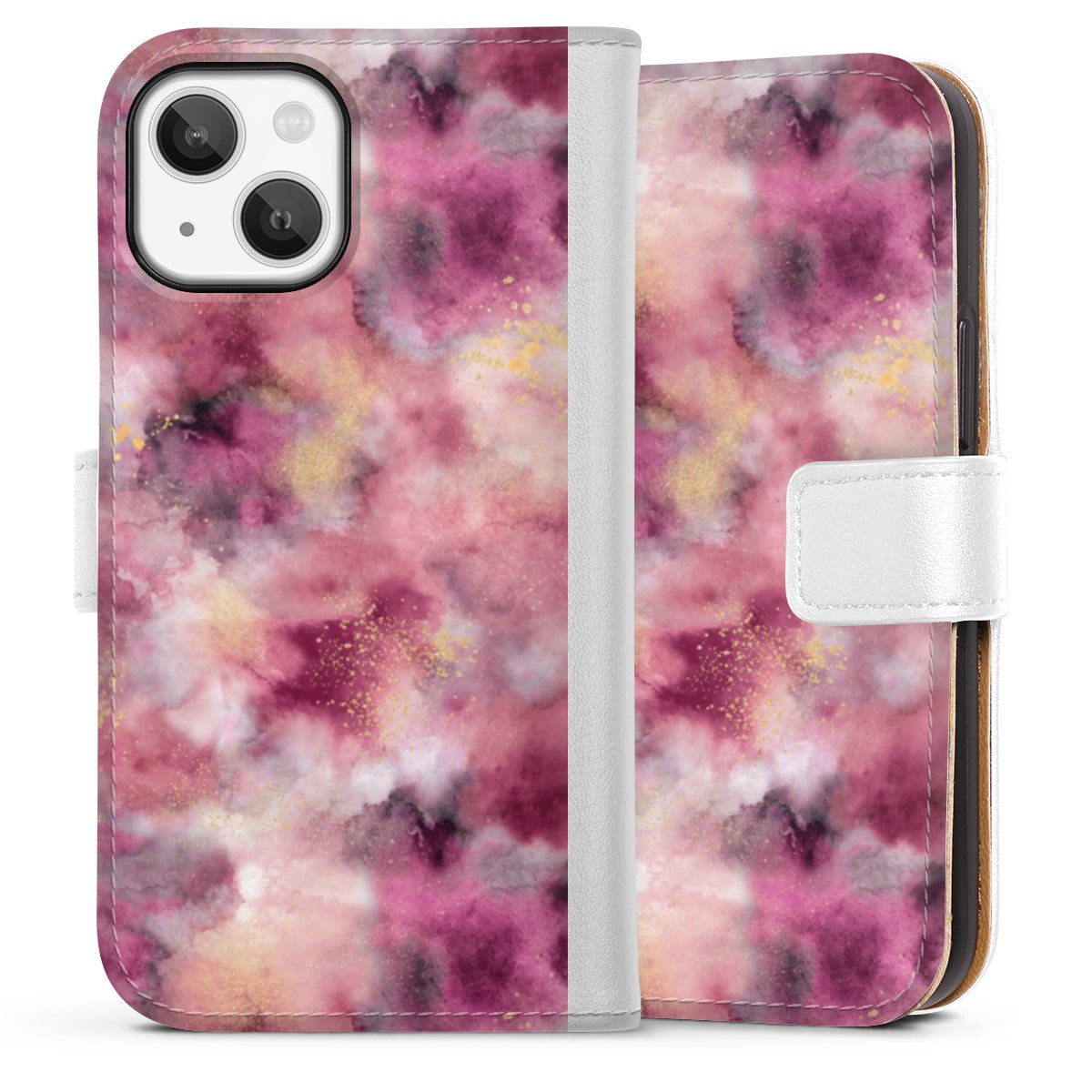 For our Sideflip Case we are using our advanced direct printing technology. The back and frontside are fully printabale, the inside of the phone bag is left unprinted. You can order the phone case without print, printed completely or also with a partial print.