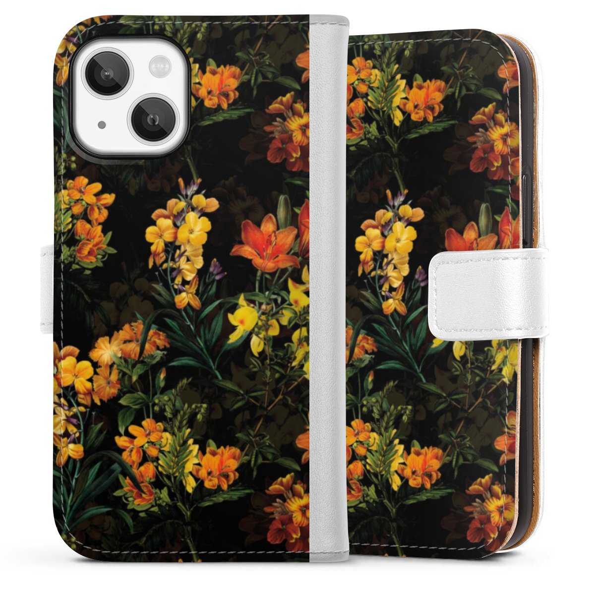 For our Sideflip Case we are using our advanced direct printing technology. The back and frontside are fully printabale, the inside of the phone bag is left unprinted. You can order the phone case without print, printed completely or also with a partial print.